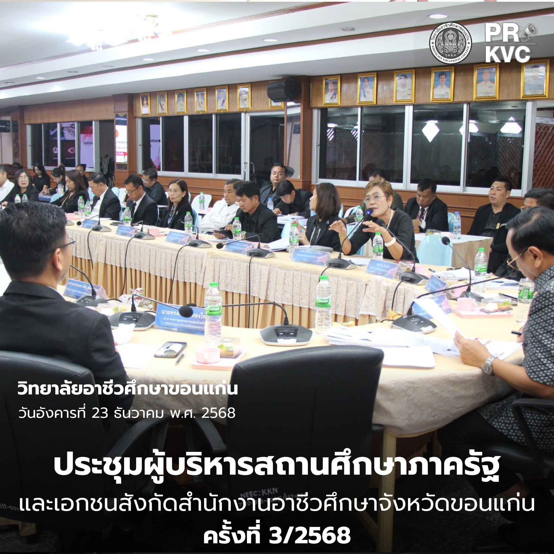 ผู้อำนวยการวิทยาลัยอาชีวศึกษาขอนแก่น พร้อมด้วยคณะครู เข้าร่วมประชุมผู้บริหารสถานศึกษาภาครัฐและเอกชนสังกัดสำนักงานอาชีวศึกษาจังหวัดขอนแก่น ครั้งที่ 3/2568