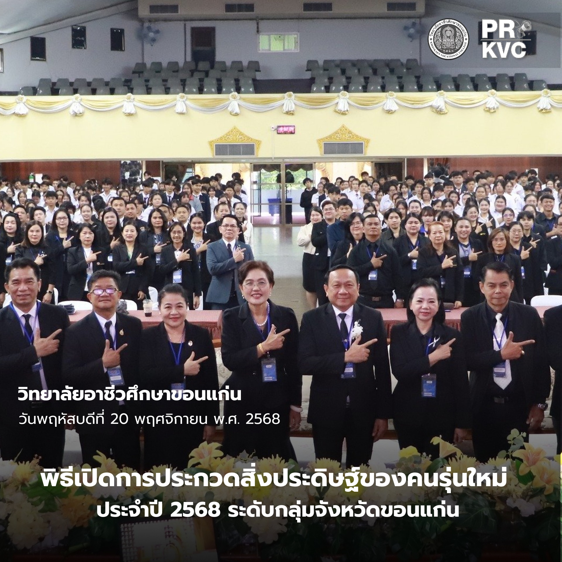 วิทยาลัยอาชีวศึกษาขอนแก่น จัดพิธีเปิดการประกวดสิ่งประดิษฐ์ของคนรุ่นใหม่ ประจำปี 2568 ระดับกลุ่มจังหวัดขอนแก่น โดยได้รับเกียรติจาก ดร.บรรจง พลขันธ์ ผู้อำนวยการวิทยาลัยเทคนิคขอนแก่น ทำหน้าที่แทน ผู้อำนวยการสำนักงานอาชีวศึกษาจังหวัดขอนแก่น เป็นประธานกล่าวเปิดการประกวด