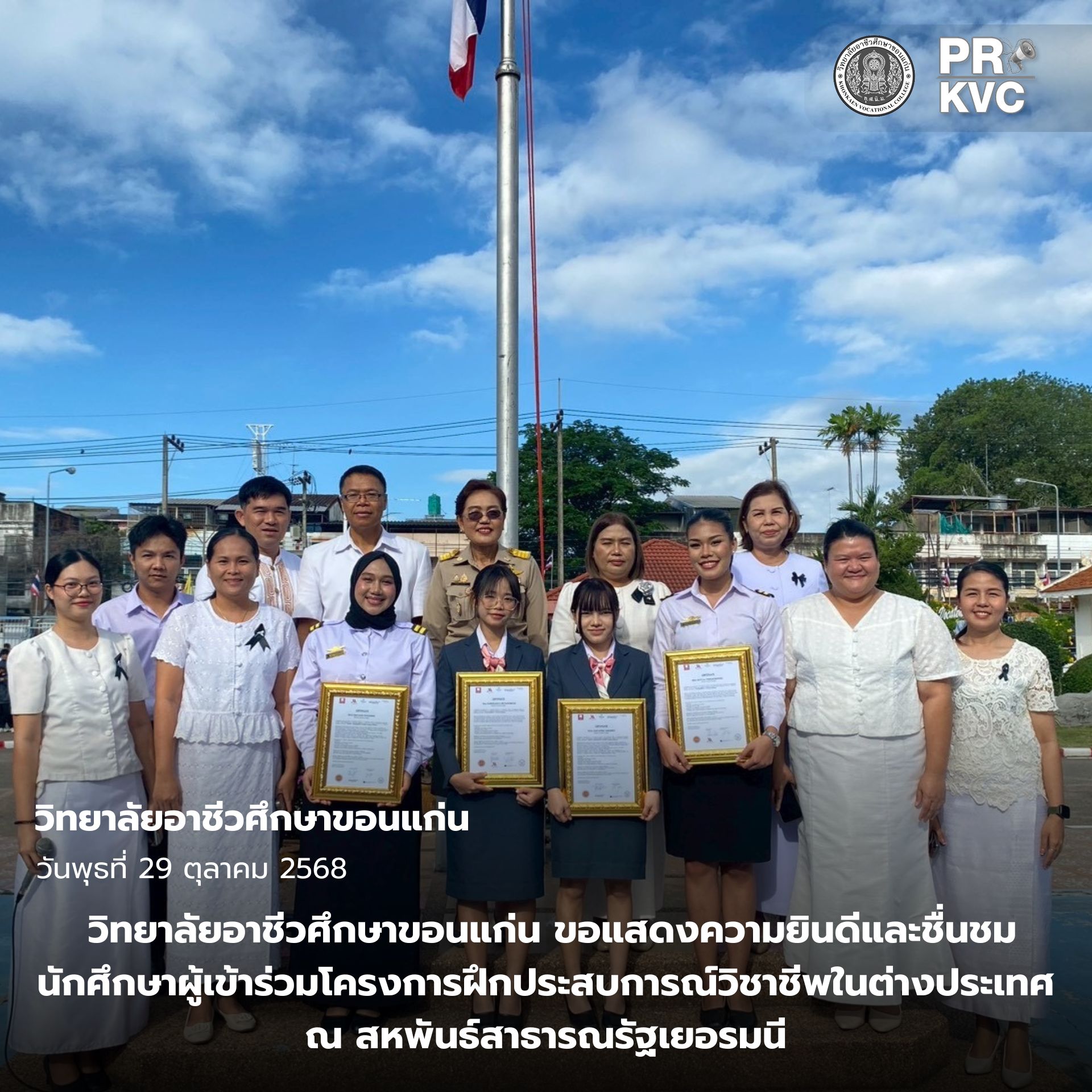 วิทยาลัยอาชีวศึกษาขอนแก่น ขอแสดงความยินดีและชื่นชมนักศึกษาผู้เข้าร่วมโครงการฝึกประสบการณ์วิชาชีพในต่างประเทศ ณ สหพันธ์สาธารณรัฐเยอรมนี