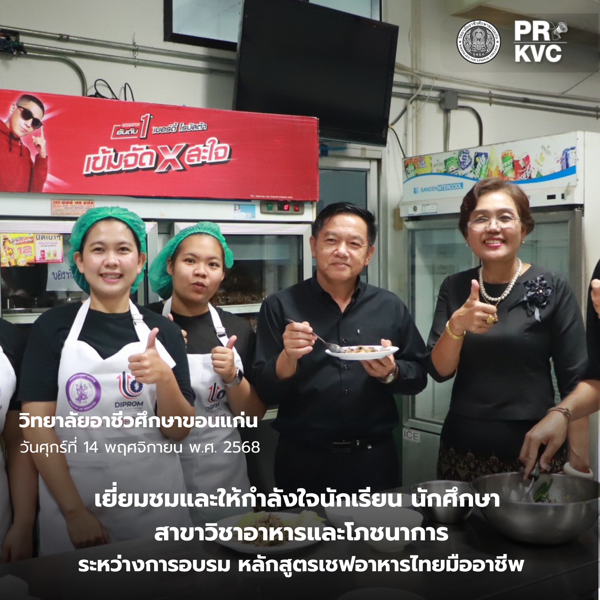 ได้เข้ามาติดตามกระบวนการเรียนการสอน พร้อมถ่ายทำวิดีโอประกอบเนื้อหาการอบรม เพื่อเผยแพร่และประชาสัมพันธ์ให้เห็นถึงศักยภาพของผู้เข้าร่วมอบรม รวมถึงรูปแบบการจัดการเรียนการสอนที่มีคุณภาพของวิทยาลัยอาชีวศึกษาขอนแก่นมุ่งมั่นเสริมสร้างทักษะวิชาชีพด้านอาหารและโภชนาการ