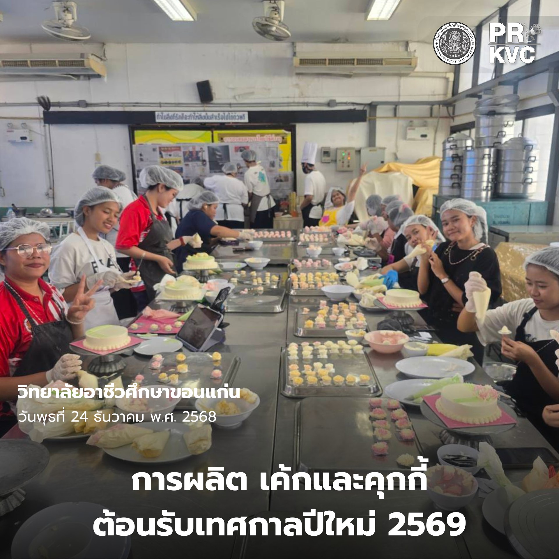 ดร.สิริรัชนา เนาว์โสภา ผู้อำนวยการวิทยาลัยอาชีวศึกษาขอนแก่น ได้เข้าเยี่ยมชมและให้กำลังใจครูและนักเรียน นักศึกษาในการผลิต เค้กและคุกกี้ต้อนรับเทศกาลปีใหม่ 2569 🍪🎄