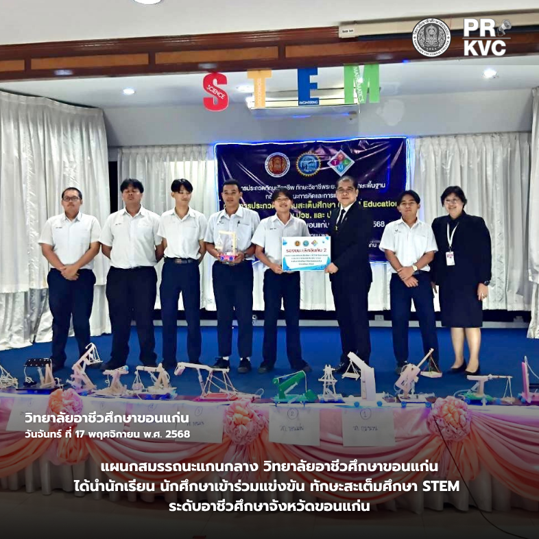 แผนกสมรรถนะแกนกลาง วิทยาลัยอาชีวศึกษาขอนแก่น ได้นำนักเรียน นักศึกษาเข้าร่วมแข่งขัน ทักษะสะเต็มศึกษา STEM ระดับอาชีวศึกษาจังหวัดขอนแก่น