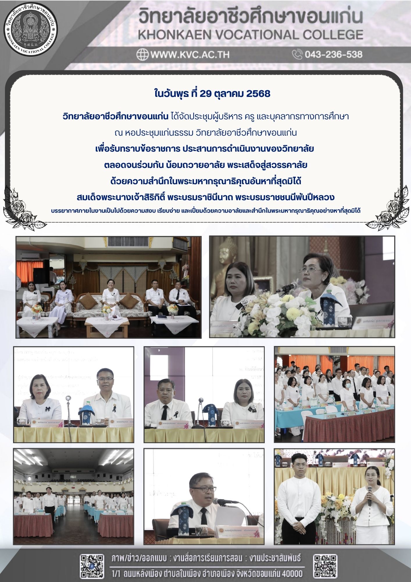 ดร.สิริรัชนา เนาว์โสภา ผู้อำนวยการวิทยาลัยอาชีวศึกษาขอนแก่น เข้าร่วมประชุม กรรมการจังหวัด หัวหน้าส่วนราชการ และหัวหน้าหน่วยงานรัฐวิสาหกิจ จังหวัดขอนแก่น ครั้งที่ 10/2568